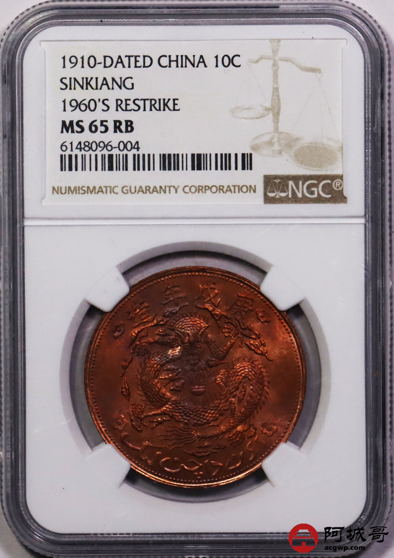 Lot:44 新疆宣统当红钱十文 NGC MS65RB