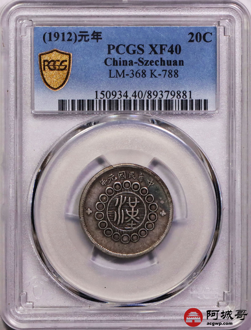Lot:22 原味老包浆 四川军政府 贰角 PCGS XF40