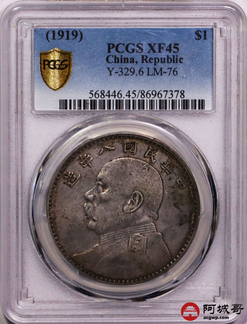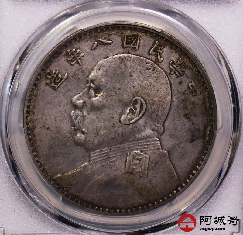 Lot:3 原味老包浆 八年大头壹圆牛口造 空心叶 PCGS XF45