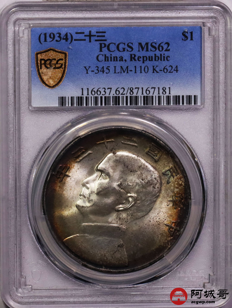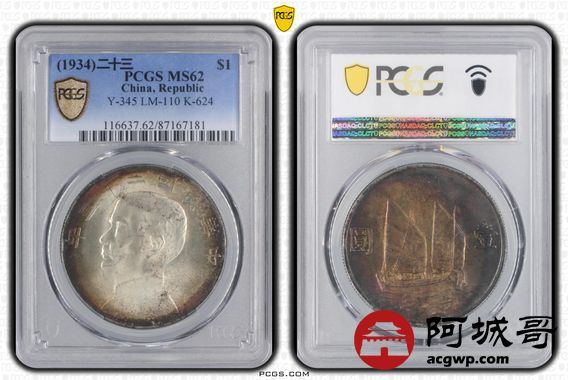 Lot:4 卷尾环五彩 二十三年船洋 PCGS MS62