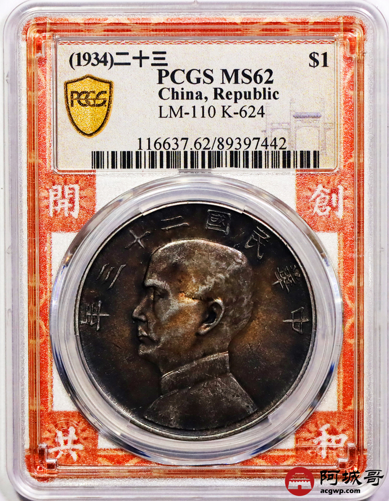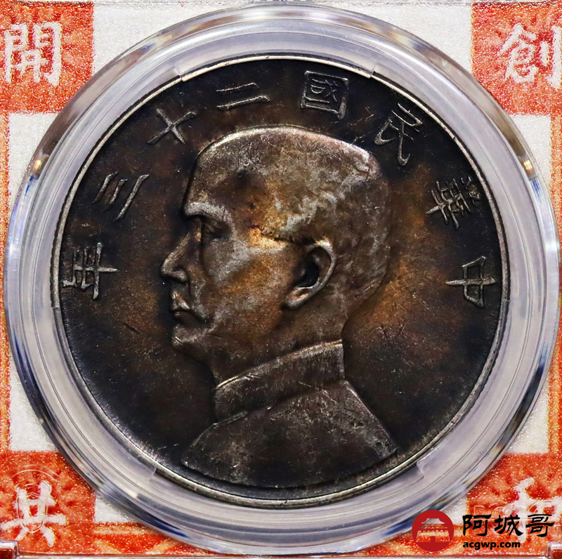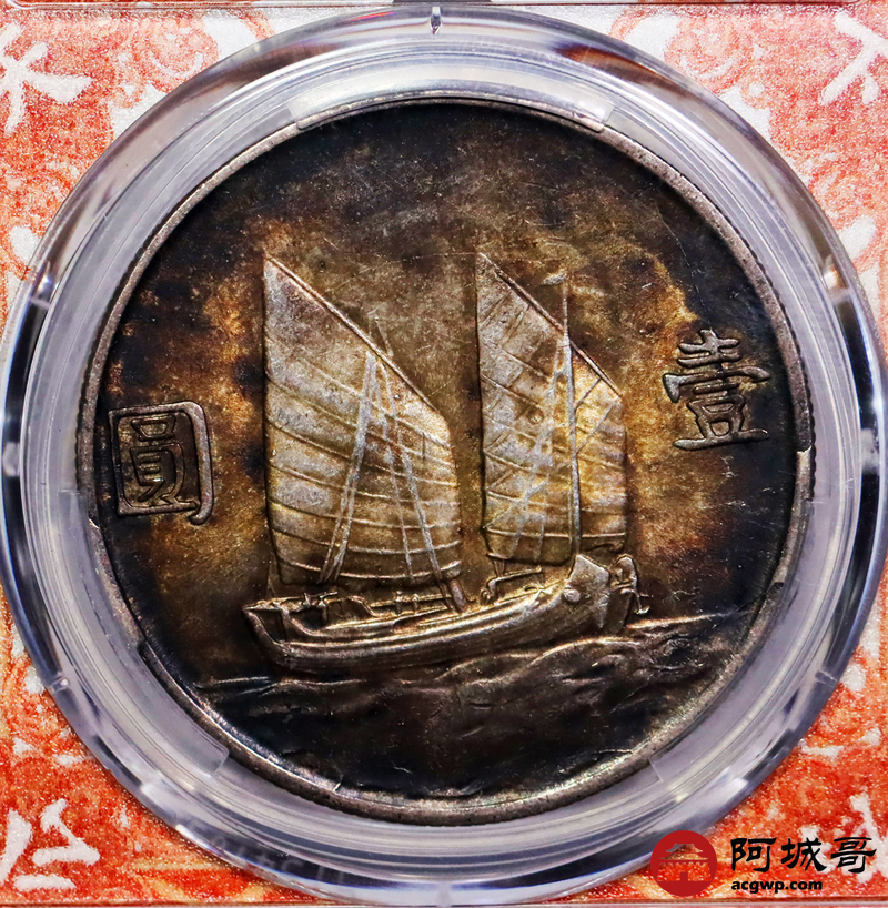 Lot:4 传世味道双面入骨酱红彩 民国二十三年船洋 PCGS MS62