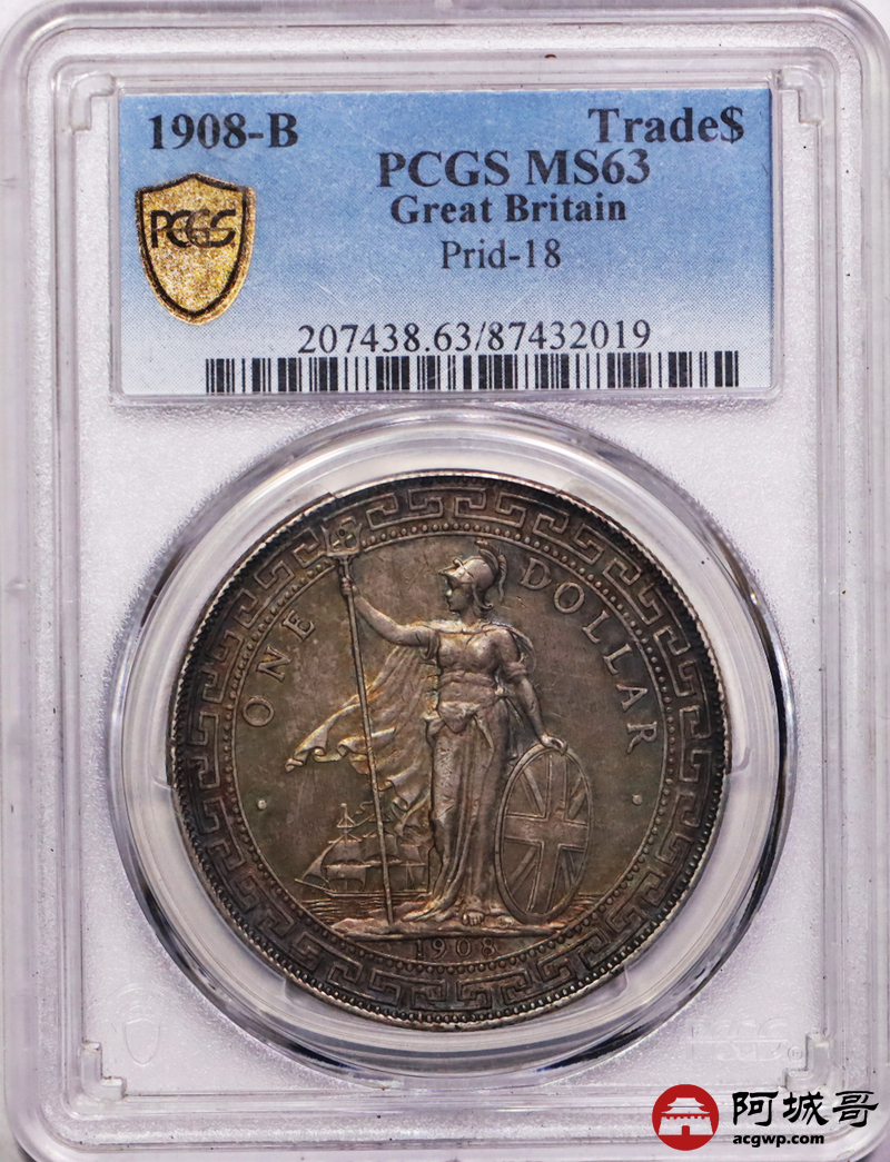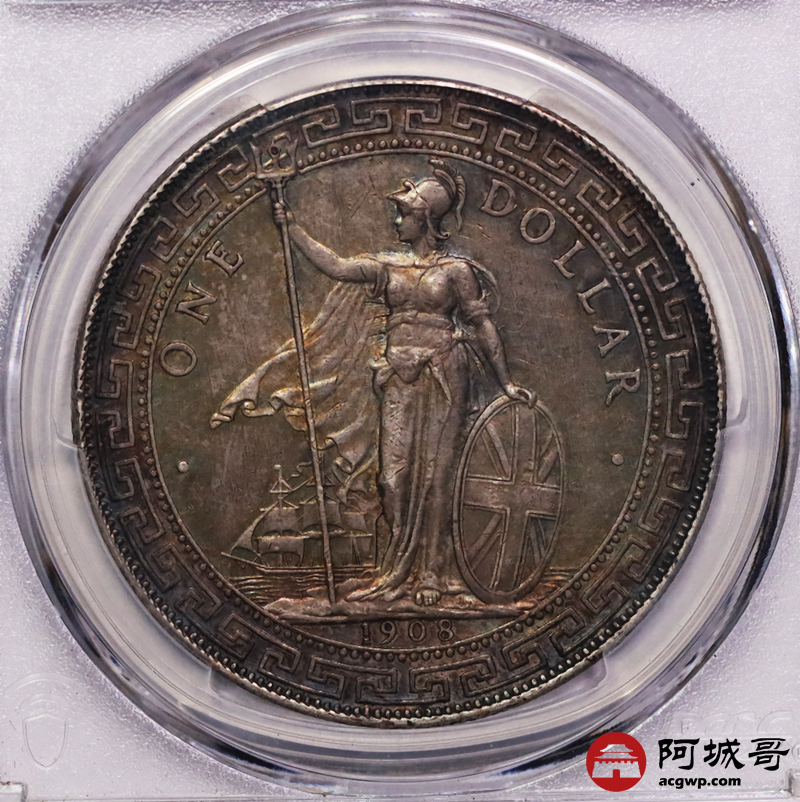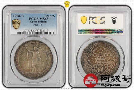 Lot:9 1908B原光 酱彩包浆 站洋壹圆 PCGS MS63