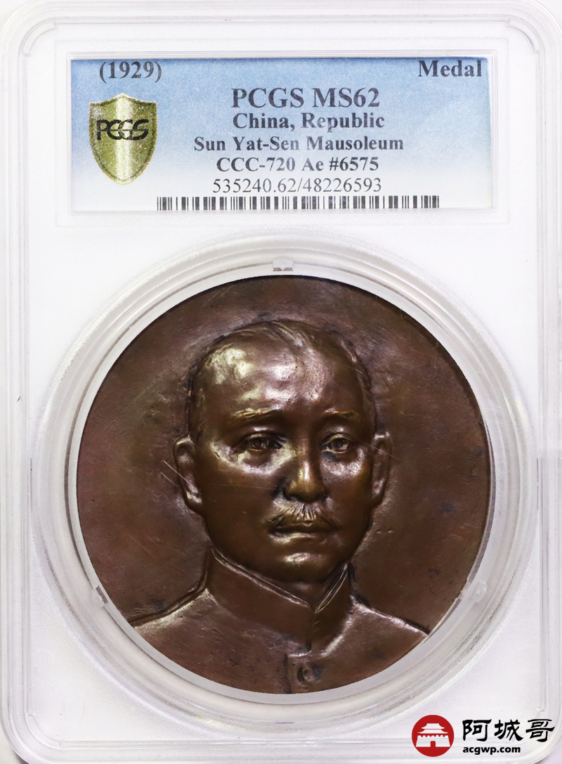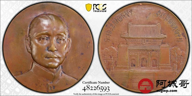 Lot:13 1929孙中山奉安大典纪念章 PCGS MS62