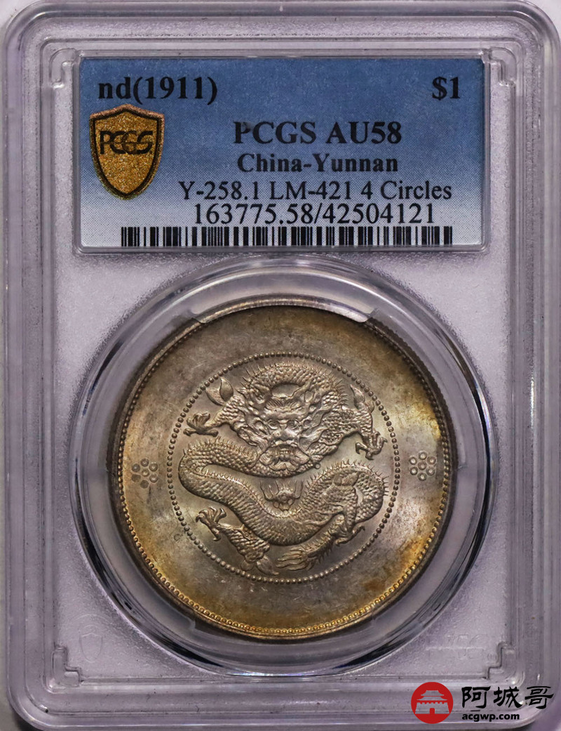 Lot:17 黄油彩原光 云南大困龙七钱二分 PCGS AU58