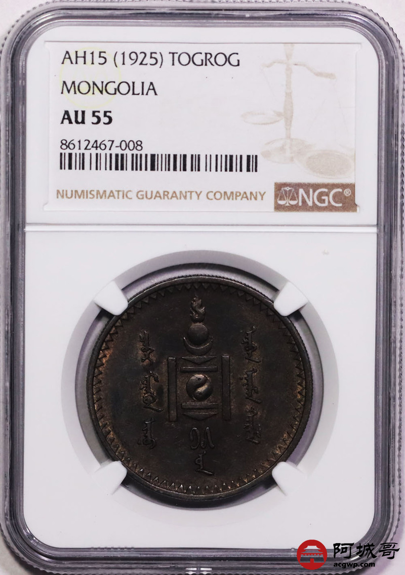 Lot:33 NGC AU55 外蒙1925年唐吉银币 五彩深包浆