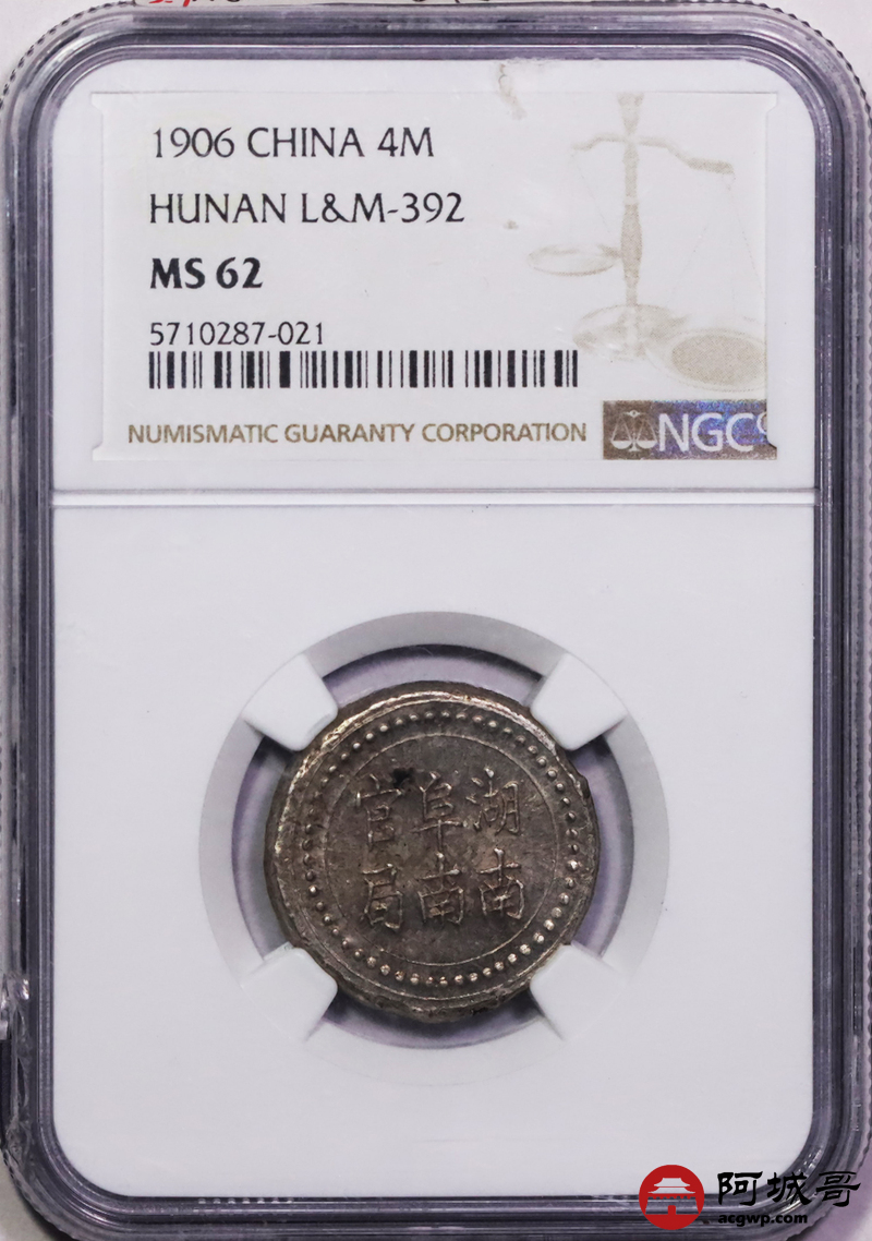 Lot:15 原光湖南阜南官局 省平足纹银四钱 NGC MS62盒小磕