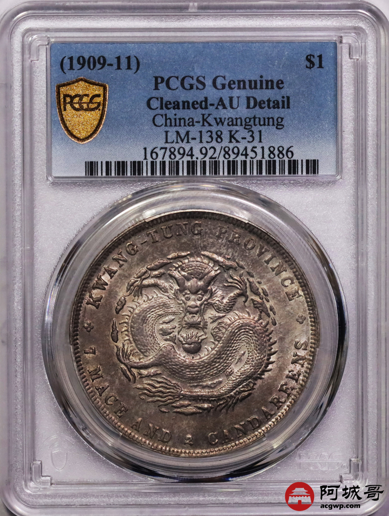 Lot:30 粉彩 转光 广东宣统七钱二分 PCGS AU
