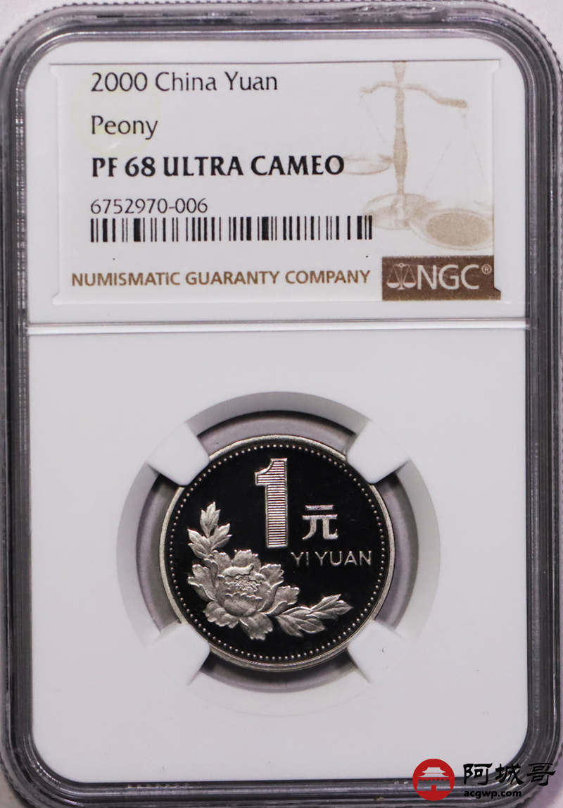 Lot:44 2000年牡丹1元精制币 NGC PF68UC盒小磕