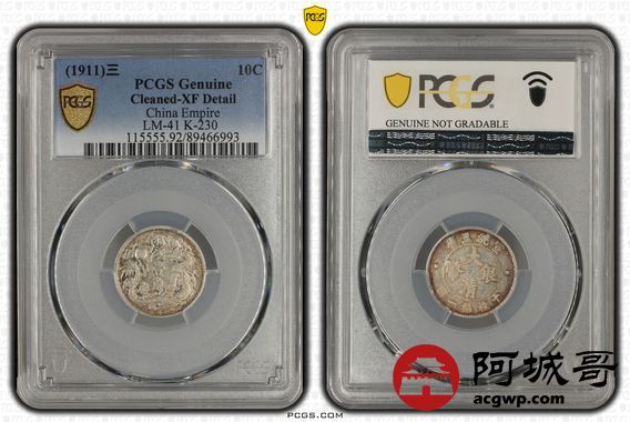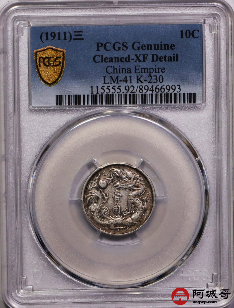 Lot:23 粉彩深打 大清立龙壹角 PCGS XF