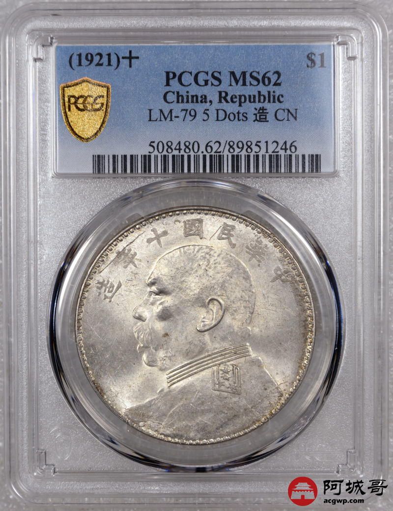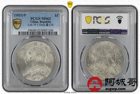 Lot:16 原光深打 十年八背壹圆 PCGS MS62