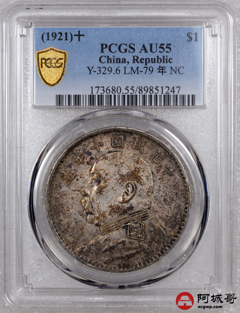 Lot:15 酱彩包浆 十年大头壹圆 PCGS AU55