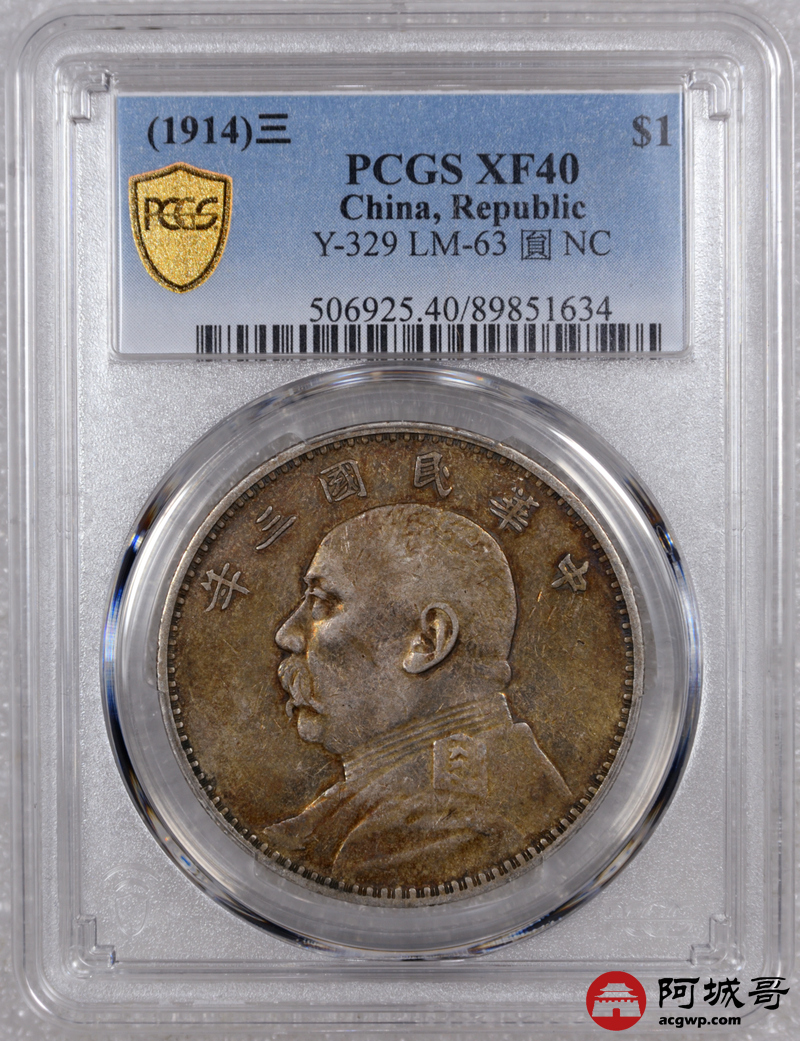 Lot:9 原味酱彩 三年大头壹圆 PCGS XF40
