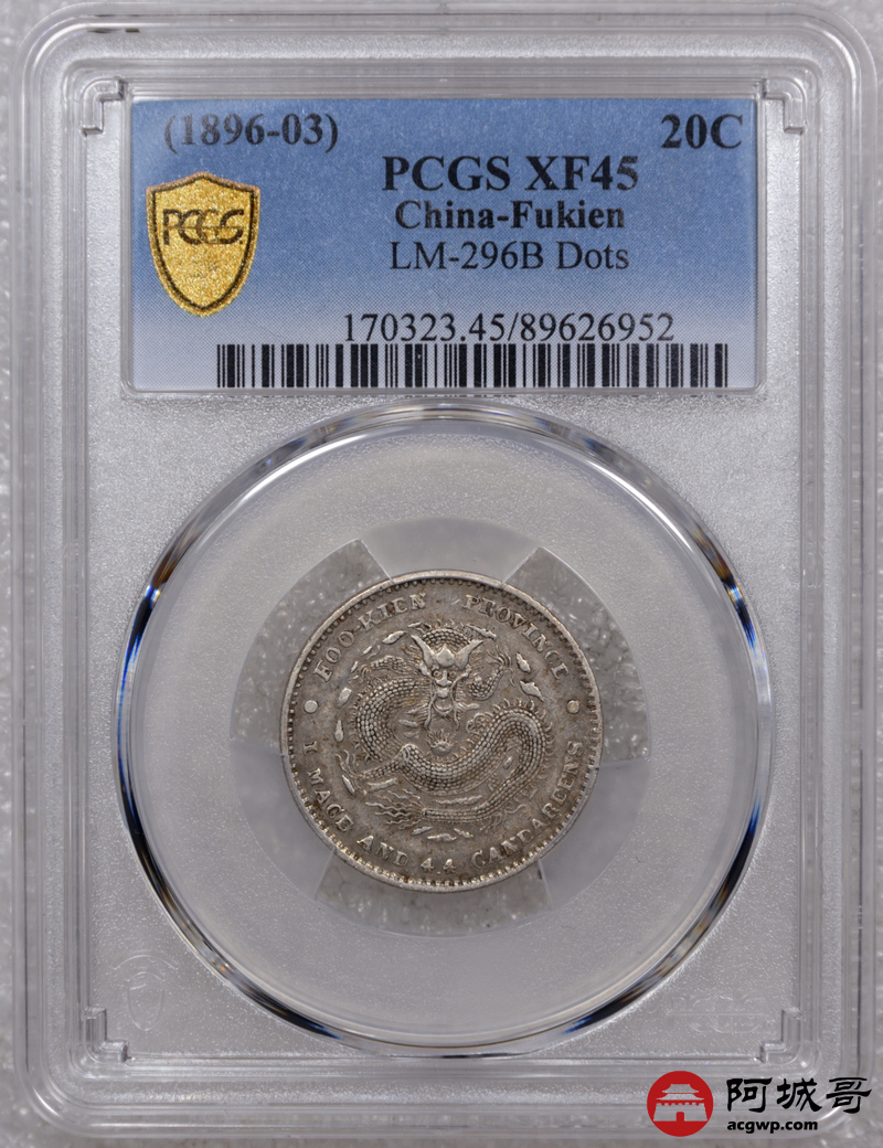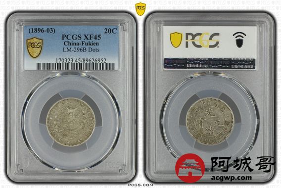 Lot:26 原味老包浆 福建光绪一钱四分四厘 PCGS XF45