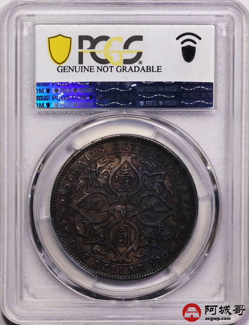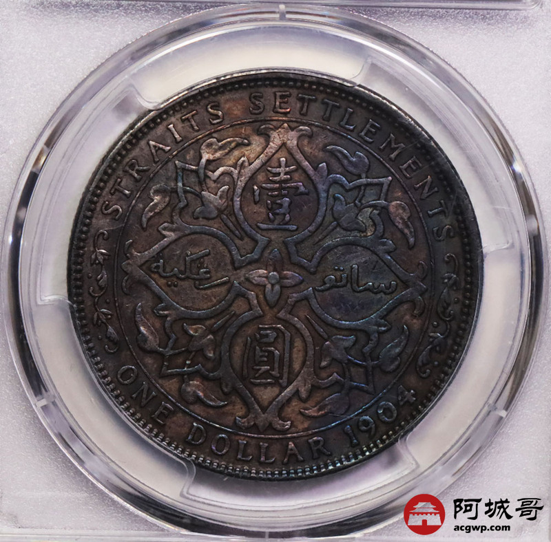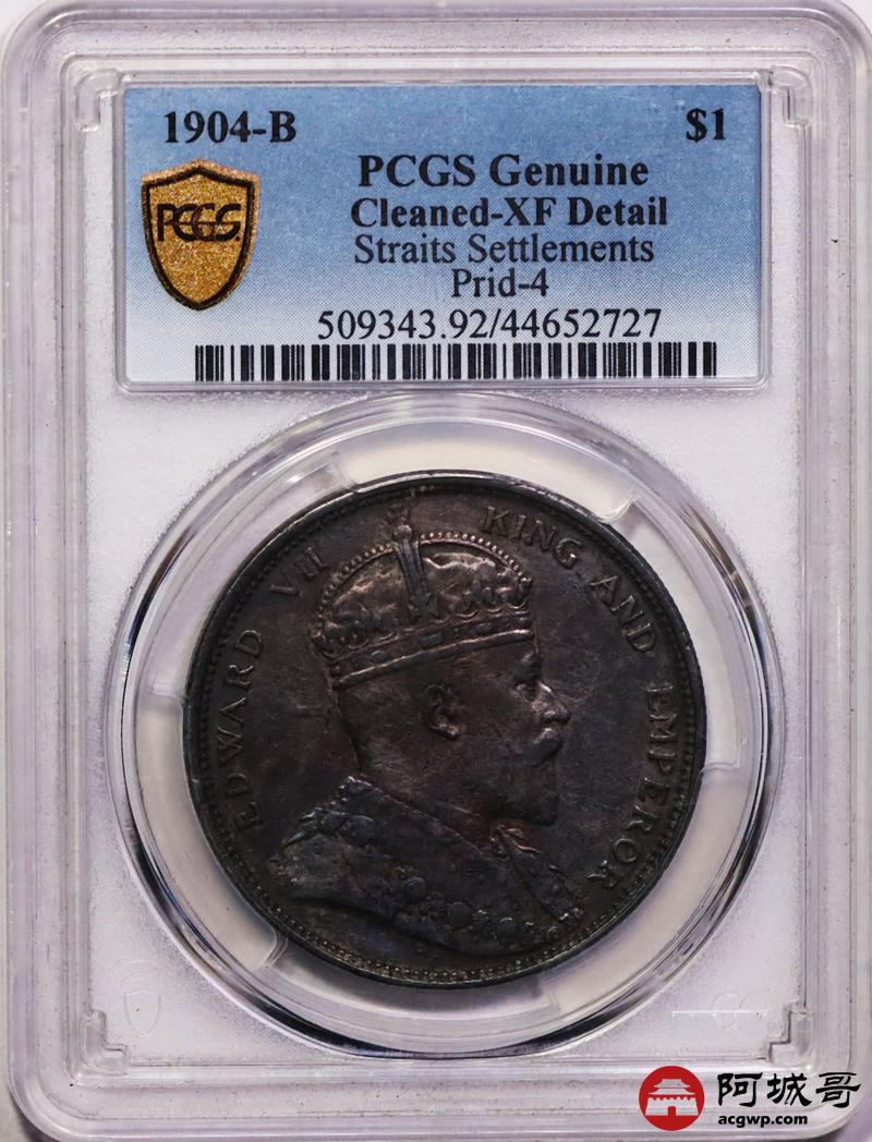 Lot:25 原味 黑彩 1904B海峡壹圆 PCGS XF