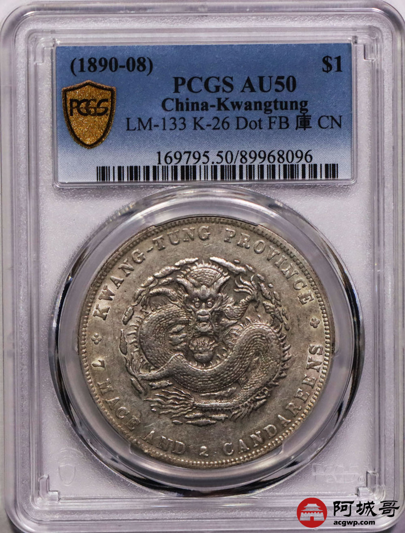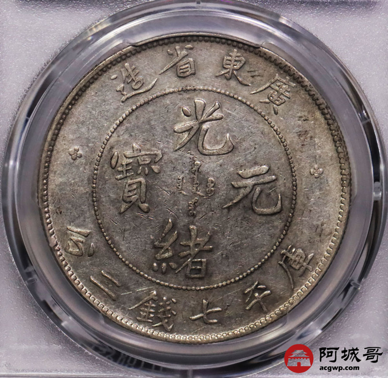 Lot:12 原味 黄油底光 广东光绪七钱二分 PCGS AU50