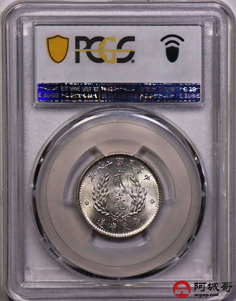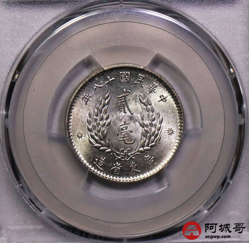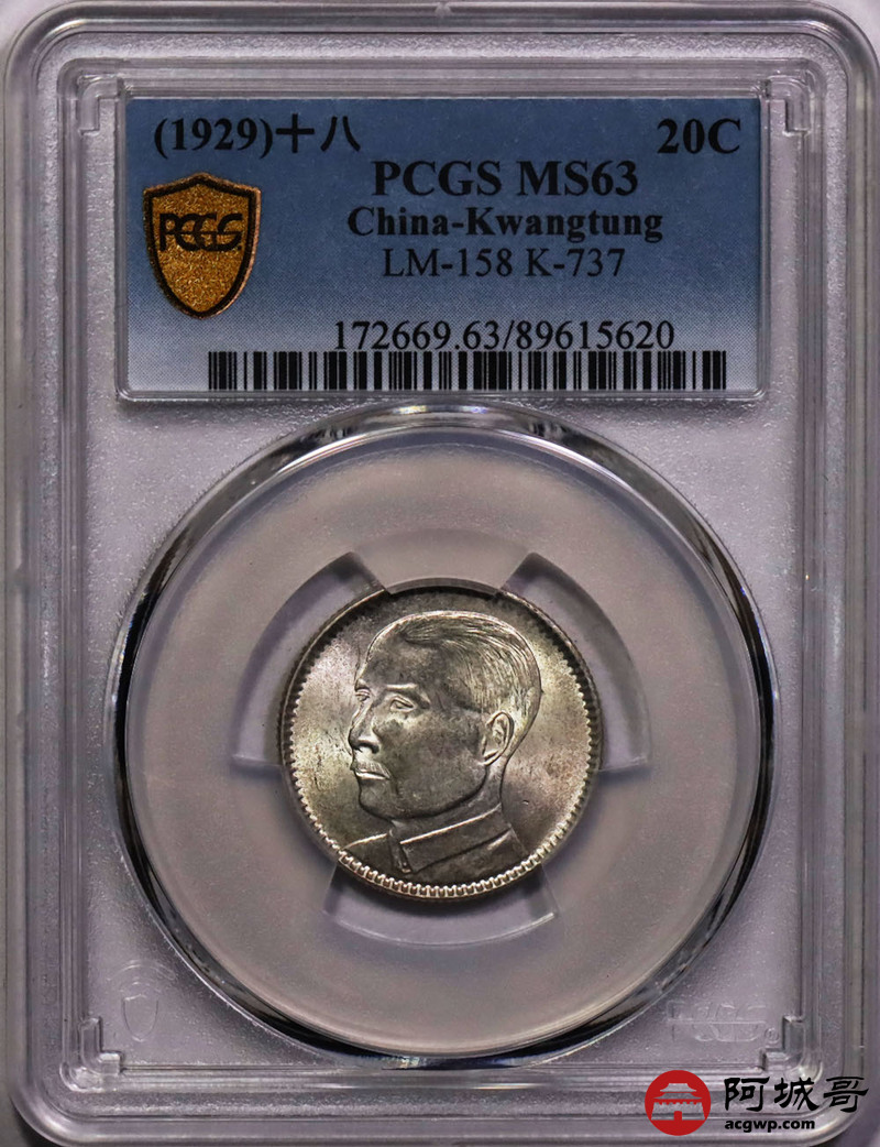 Lot:36 原光民国十八年广东孙像贰豪 PCGS MS63