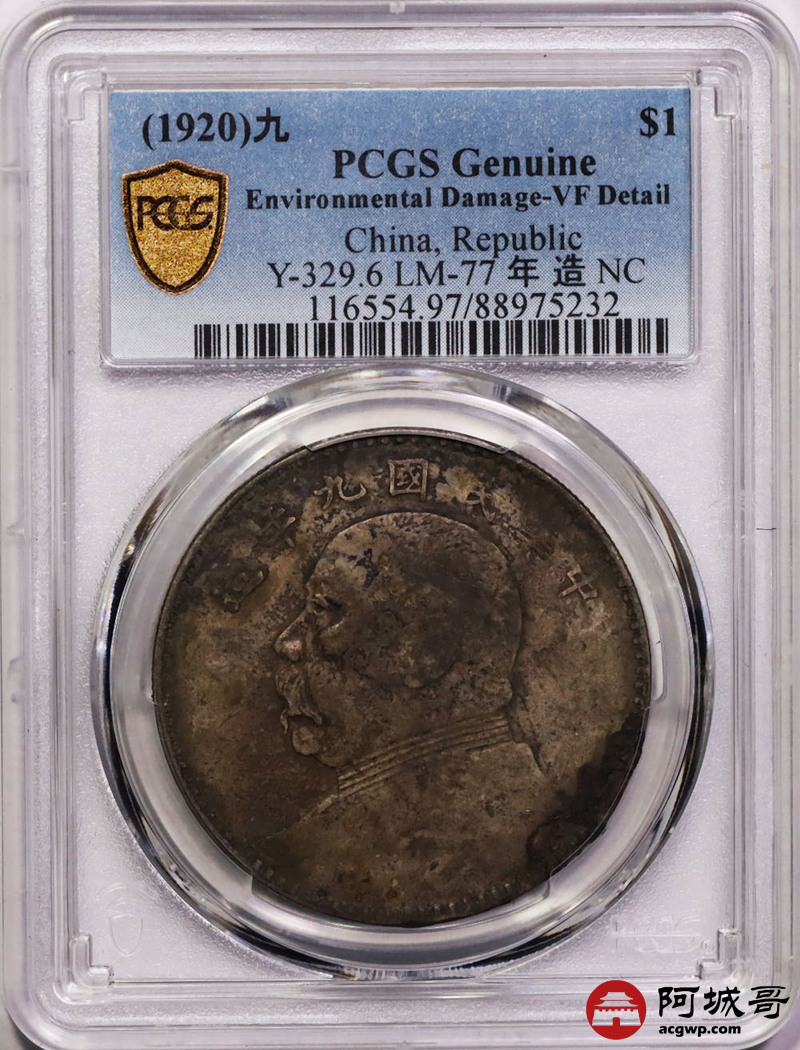 Lot:5 原味老包浆 九年大头壹圆 PCGS VF