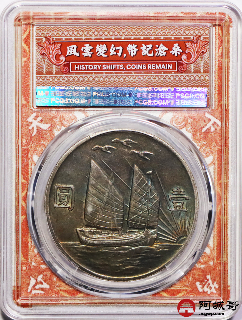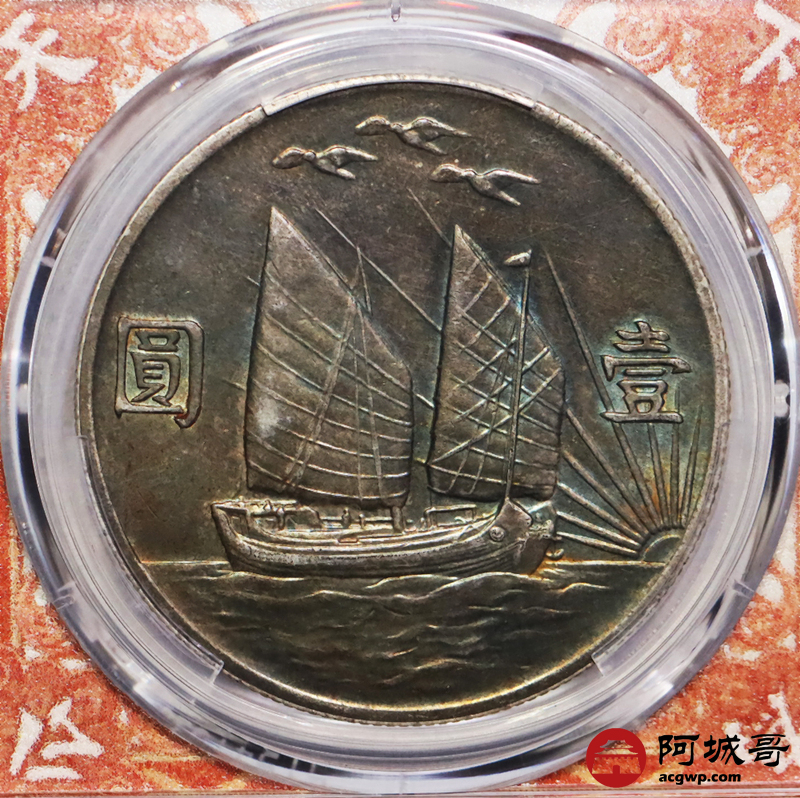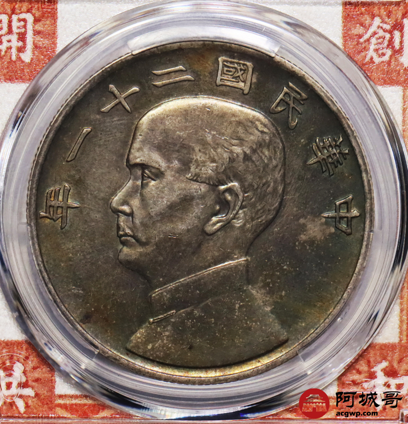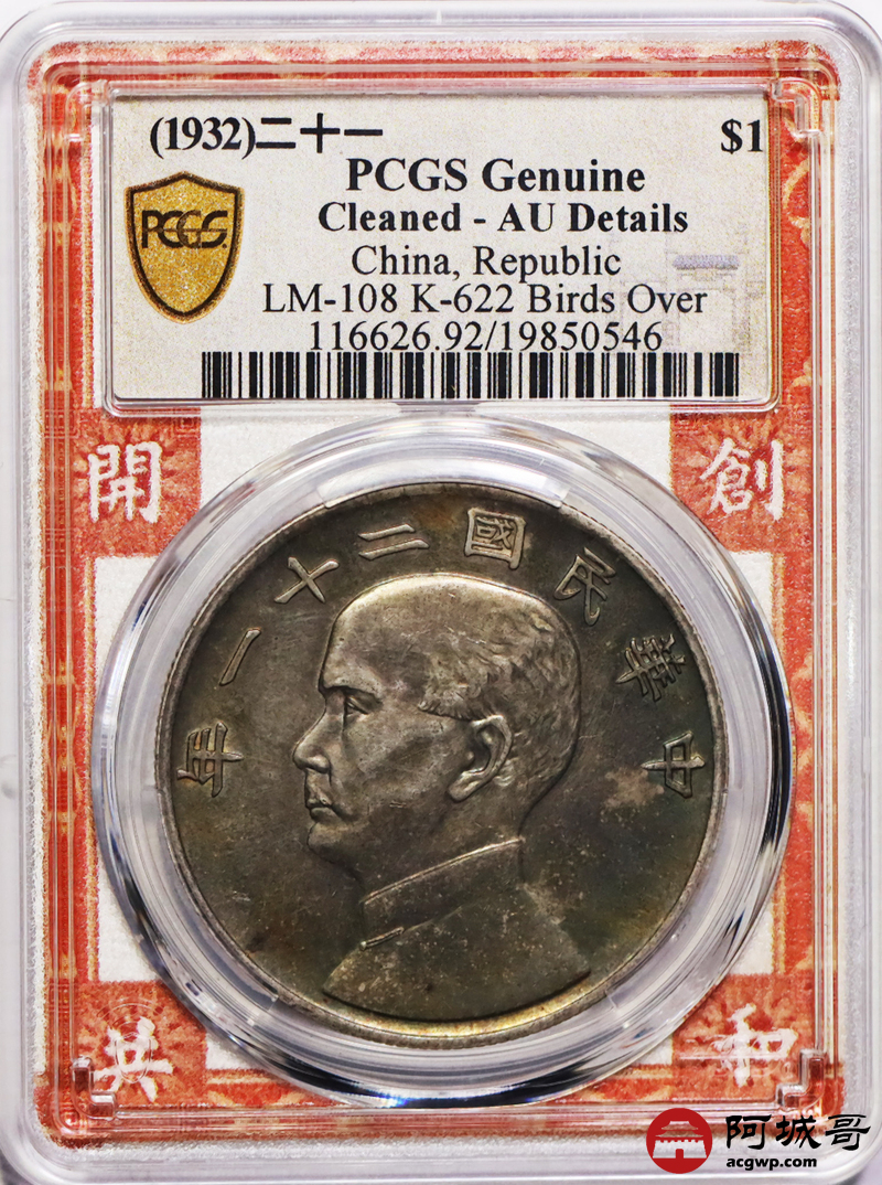 Lot:4 五彩底光 民国二十一年孙像三鸟壹圆 PCGS AU