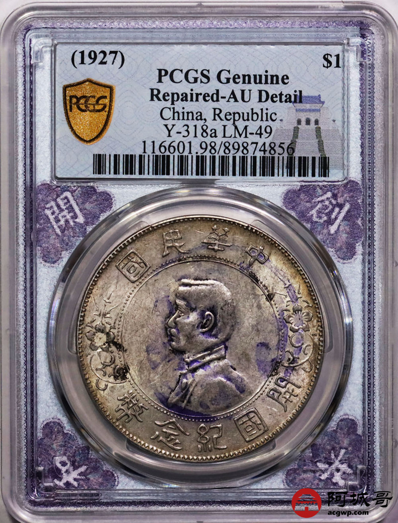 Lot:22 黄油转光 孙像小头 福寿 墨戳 PCGS AU