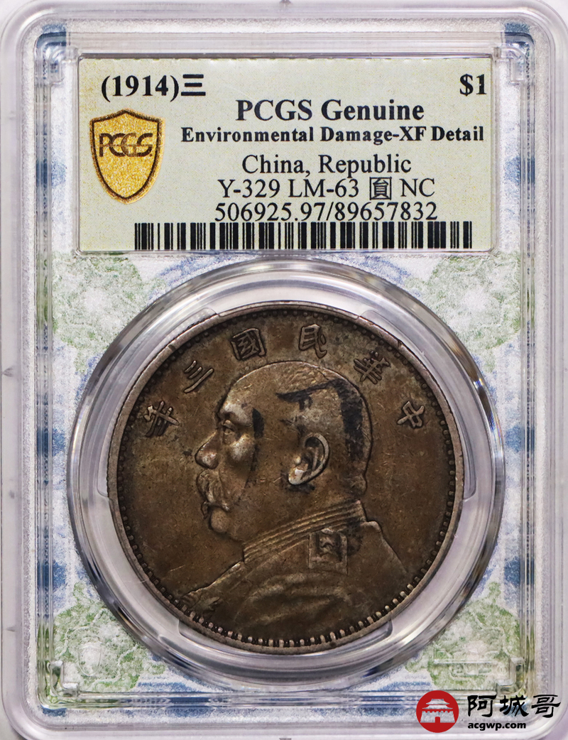 Lot:21 原味 酱彩 三年大头 周 子 老墨 PCGS XF