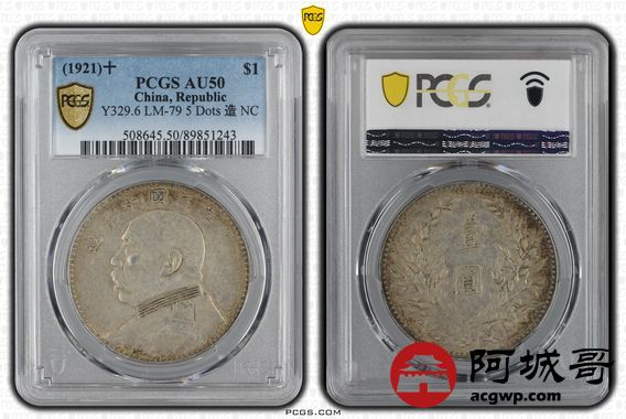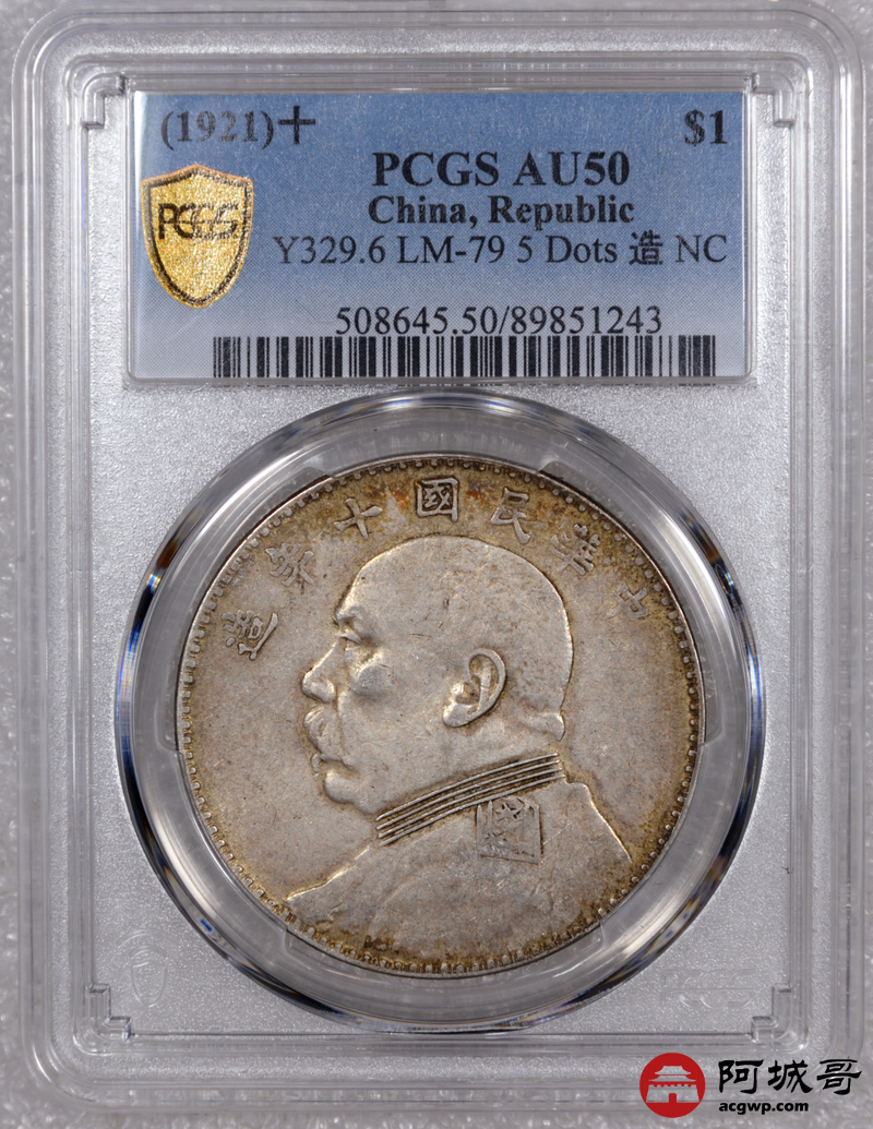 Lot:18 环彩老包浆 十年八背壹圆 PCGS AU50