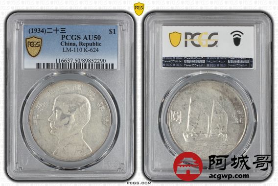 Lot:4 底光 二十三年船洋 PCGS AU50