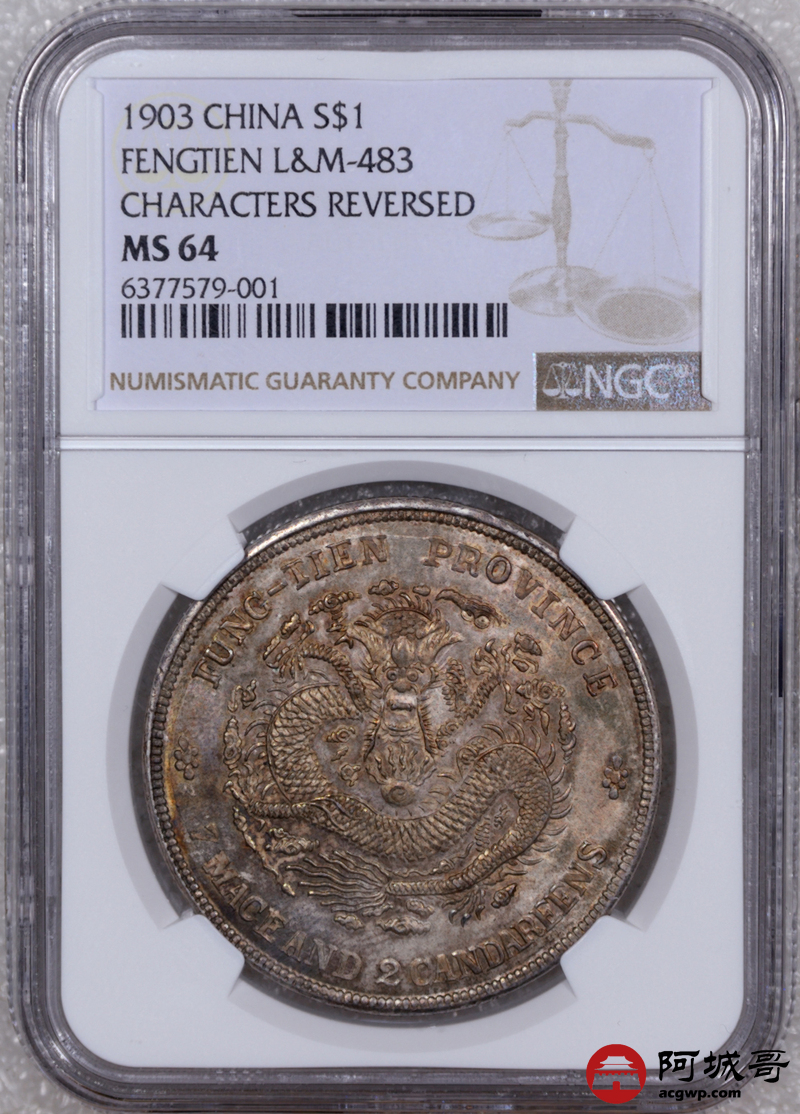 Lot:11 原光酱味包浆,满龙鳞全深打 奉天癸卯七钱二分奉宝 状态极佳,味道一流 NGC MS64