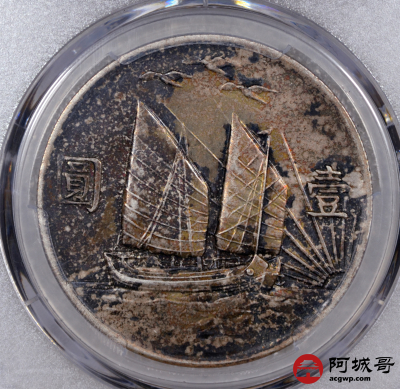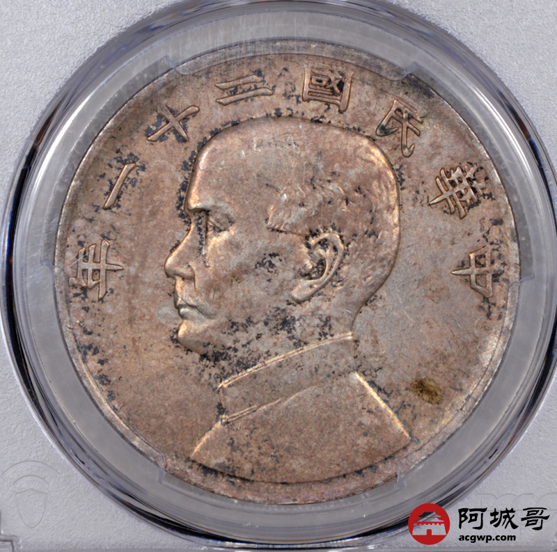 Lot:3 原味 酱彩包浆 民国二十一年孙像三鸟壹圆 PCGS AU53