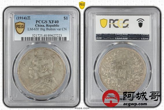 Lot:16 原味老包浆 三年大头山东大扣 PCGS XF40