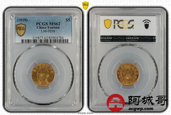 Lot:10 深打原光 唐继尧5元金币 旗下有2 PCGS MS62