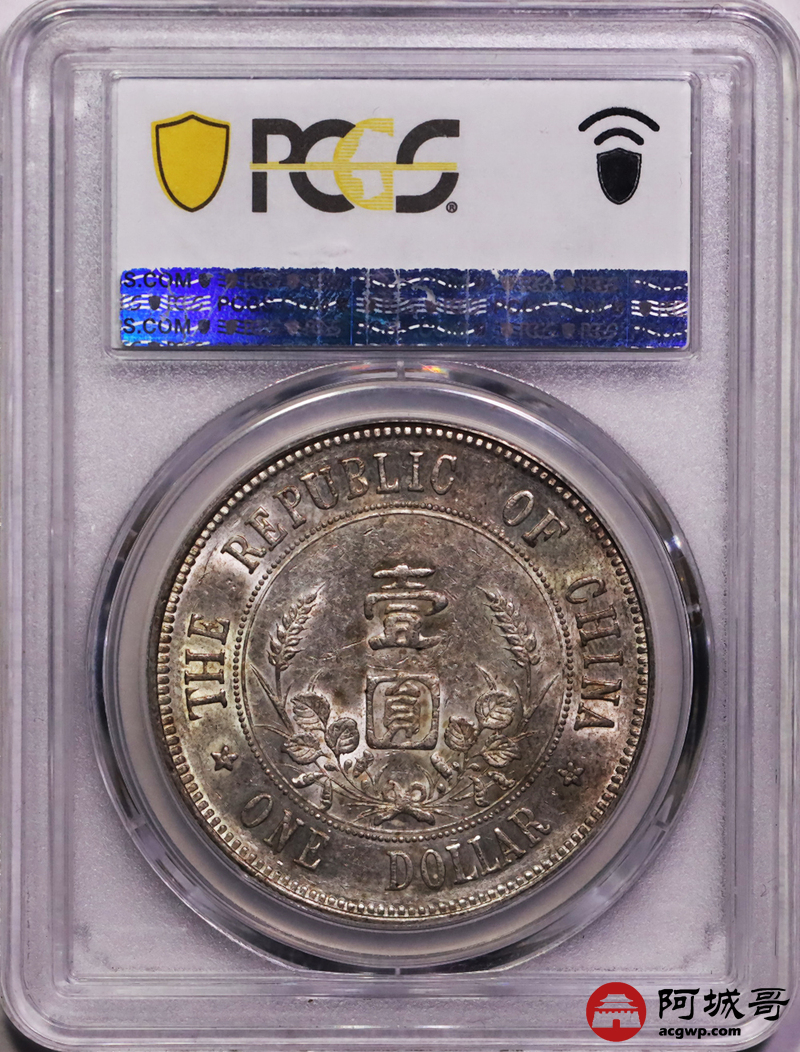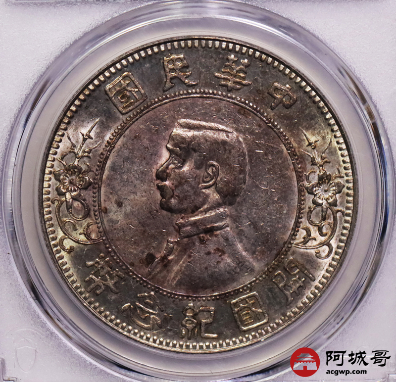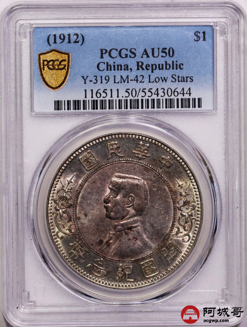 Lot:21 转光 淡彩包浆 孙像下五星壹圆 PCGS AU50