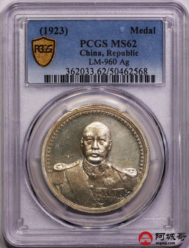 Lot:12 原色光 深打 武装曹坤纪念章 PCGS MS62