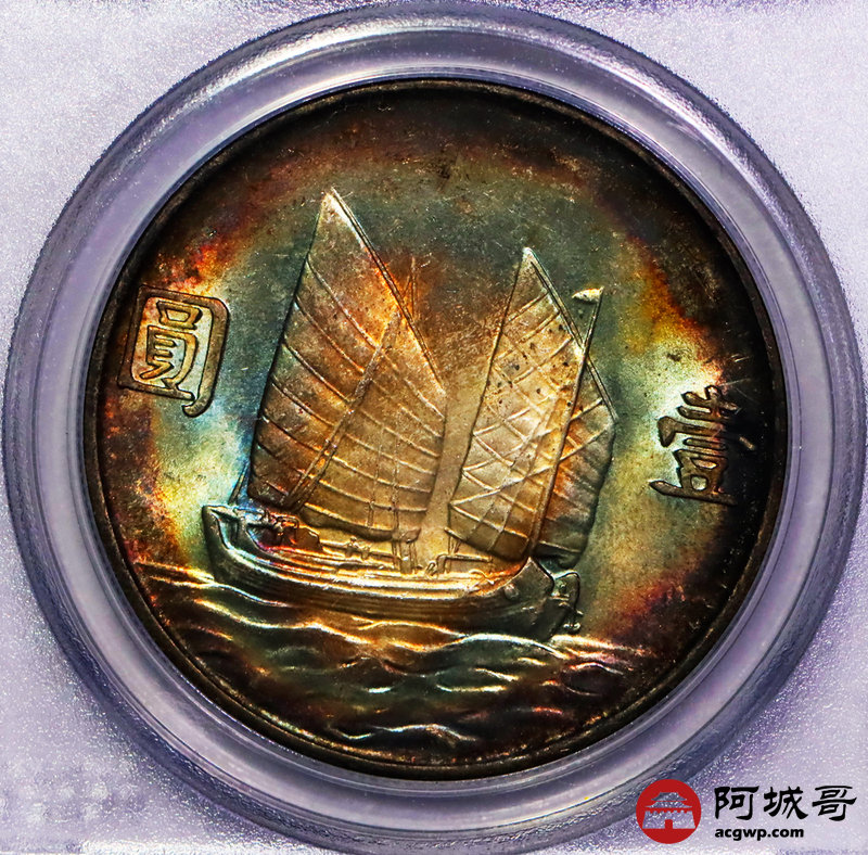 Lot:5 a顶级双面老五彩二十三年船洋味道状态极佳非常漂亮 暴转光 老盒低评状态PCGS MS62