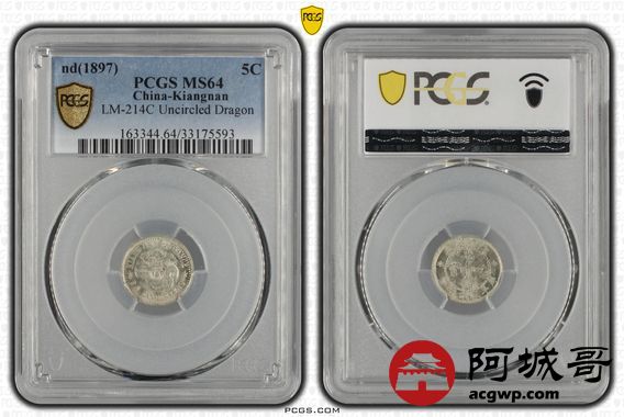 Lot:22 曝光 老江南光绪三分六厘 PCGS MS64