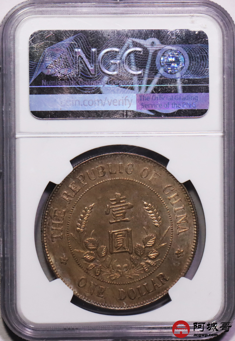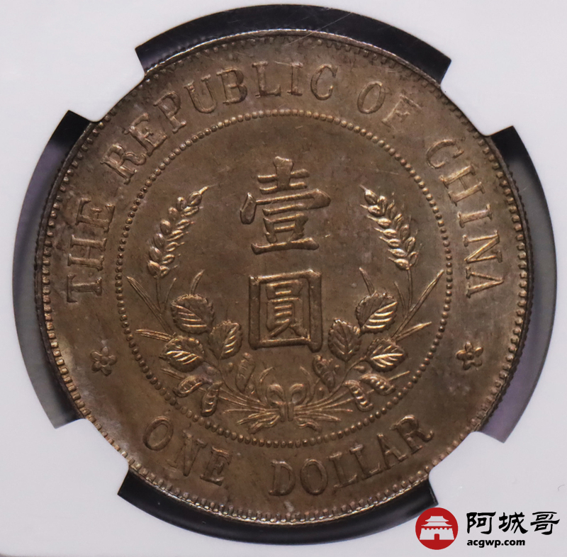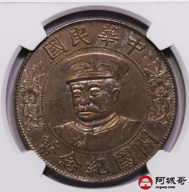 Lot:11 深打 黄油丝绸底板 黎元洪带帽纪念币 NGC MS64