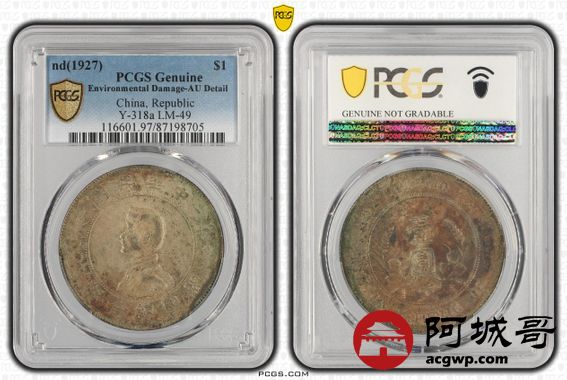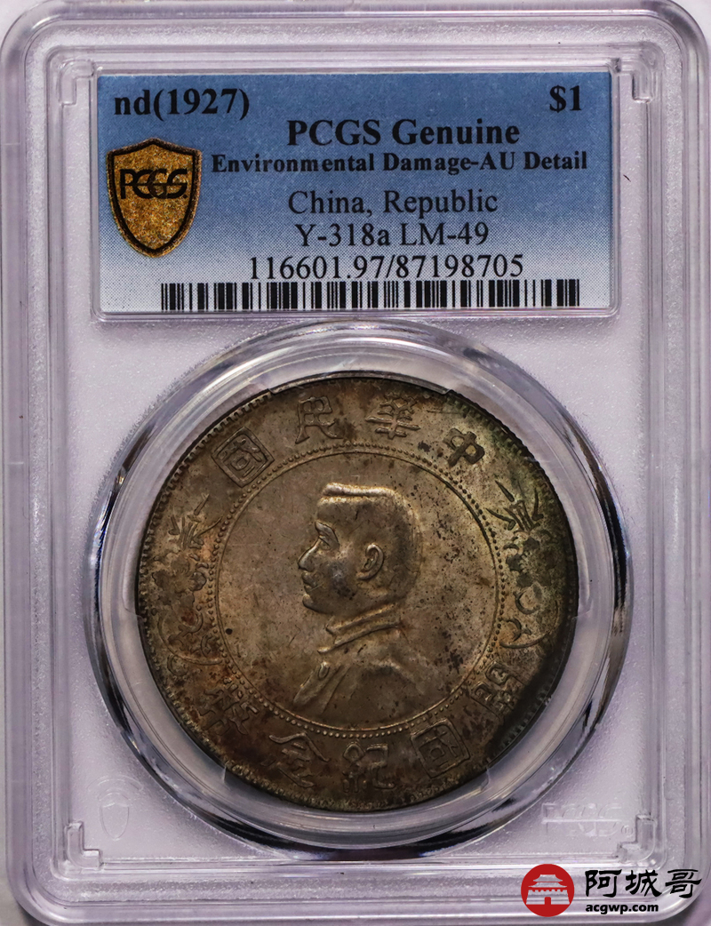 Lot:9 原味酱彩底光 孙像小头壹圆 PCGS AU