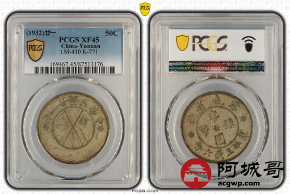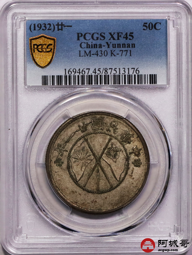 Lot:24 原味老包浆 云南双旗半圆 PCGS XF45