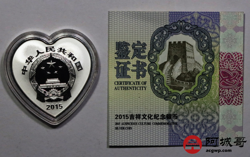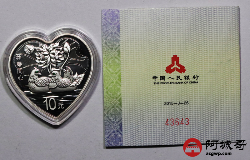 Lot:30 2015年吉祥文化并蒂同心10元银质纪念币 原盒带证