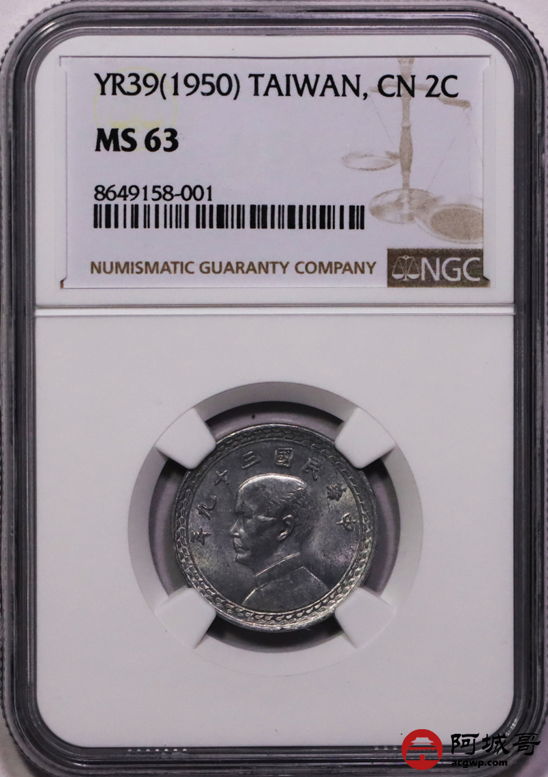 Lot:35 原光 民国三十几年台湾贰角 NGC MS63