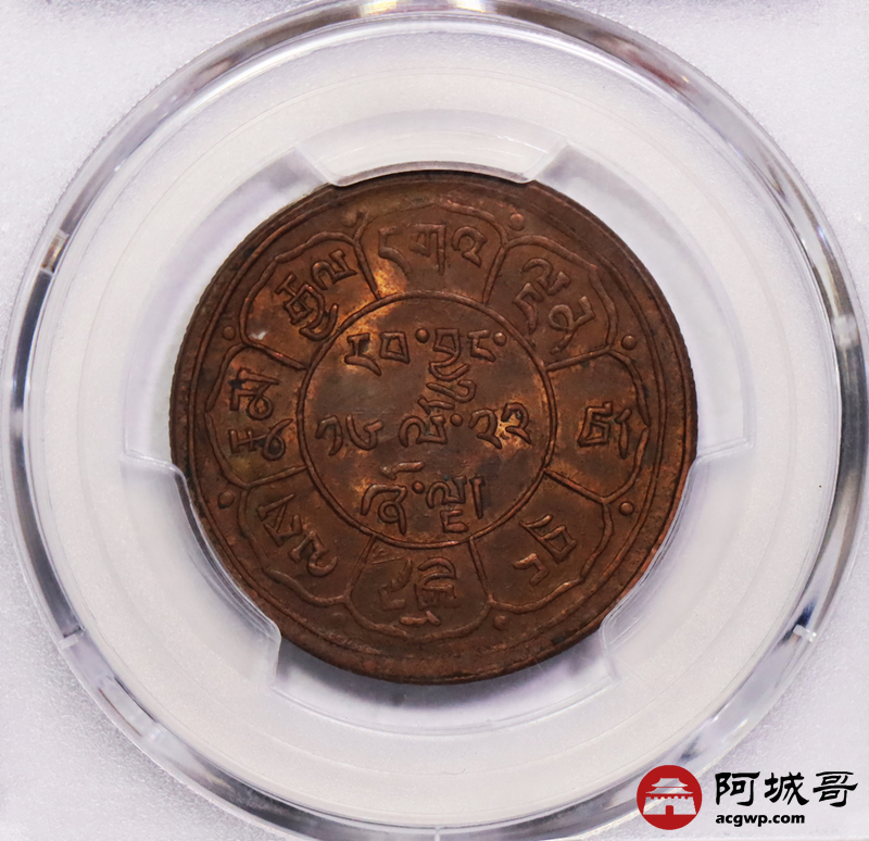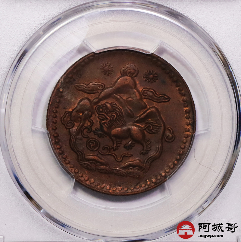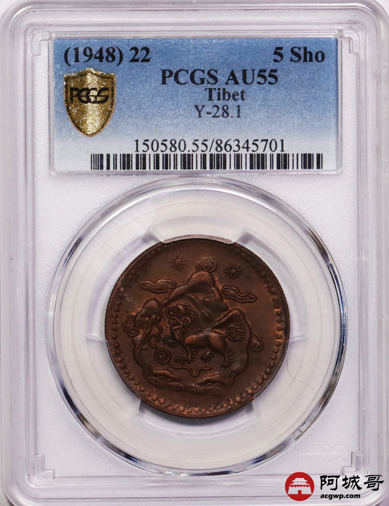Lot:37 原味底光 西藏5 Sho 三山双日狮子铜币PCGS AU55