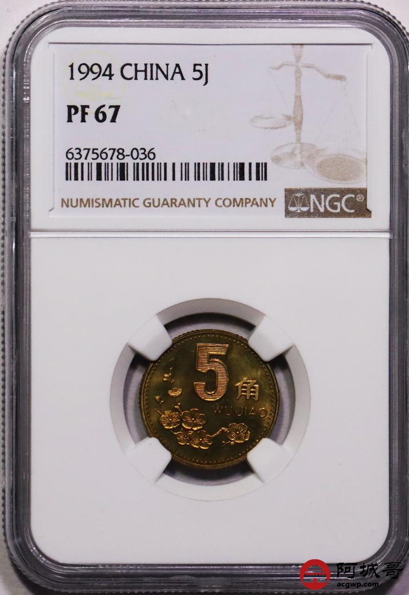 Lot:34 1994年梅花五角精制币 NGC PF67