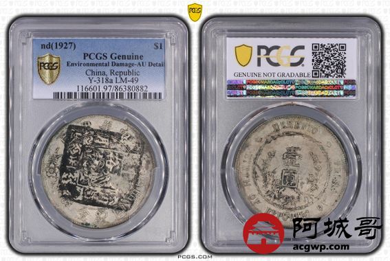Lot:3 黄油原味 孙像小头 中关 国历八月 聚丰裕记 川流不息 老墨印 PCGS AU