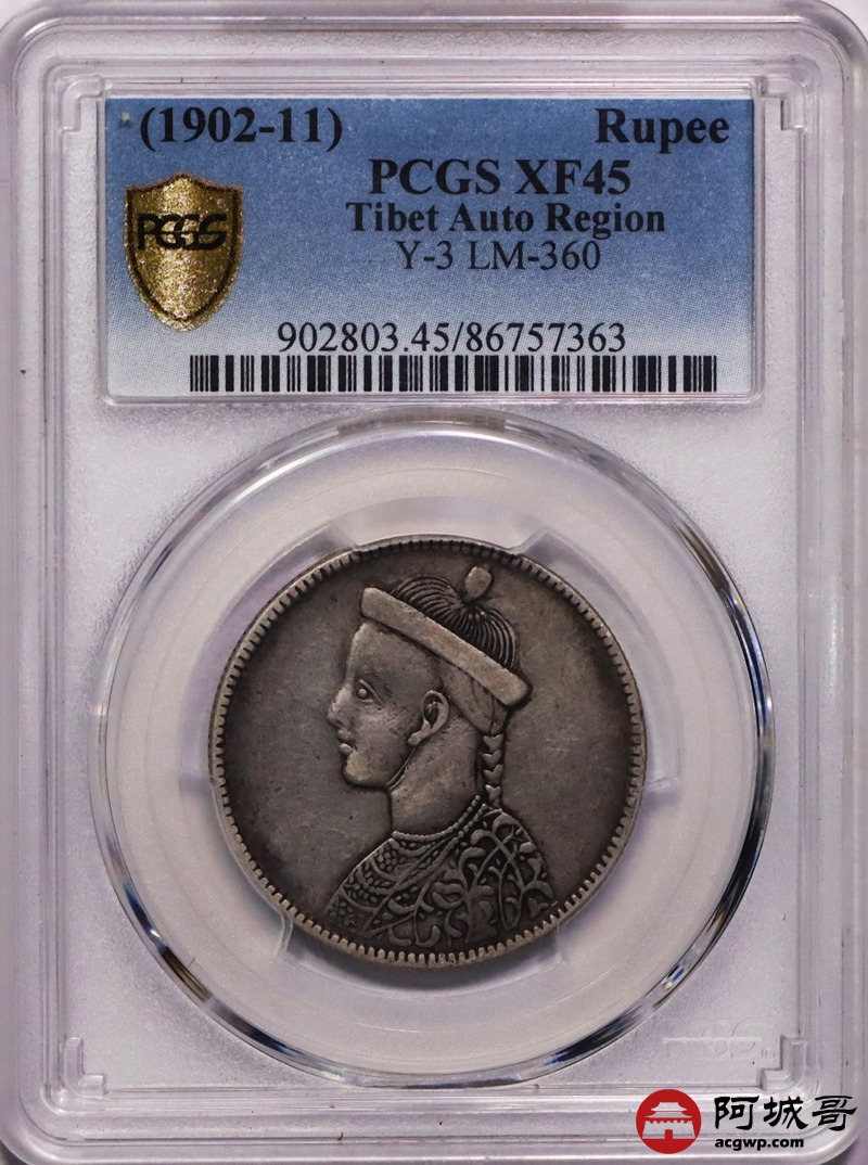 Lot:19 原味深打老包浆 四川一期卢比 无领树花三叶 PCGS XF45