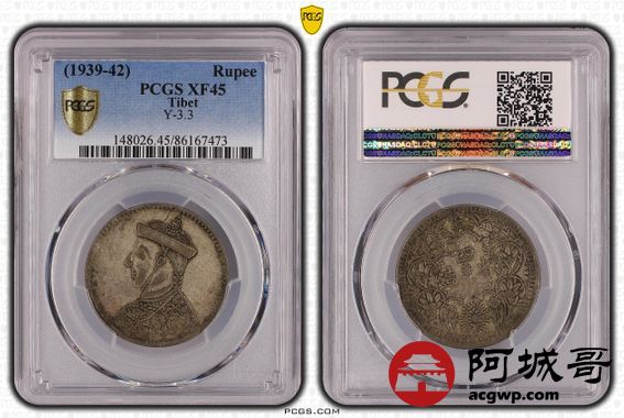 Lot:20 原味老包浆 四川四期卢比憨豆版 PCGS XF45