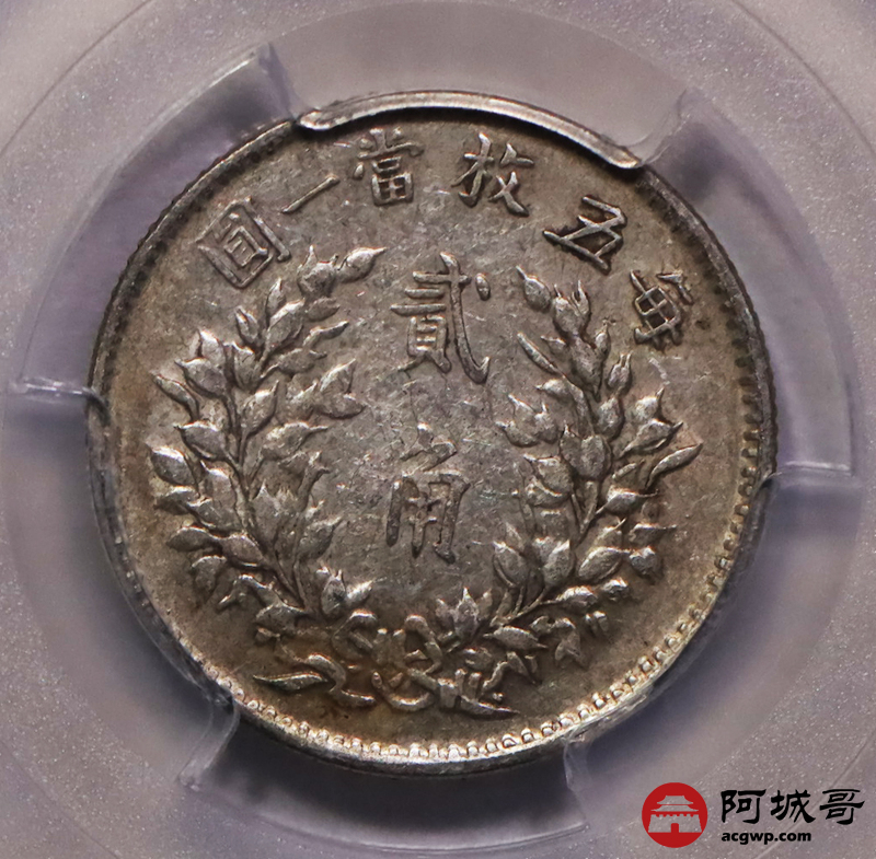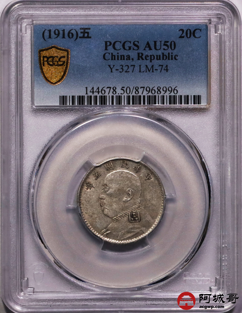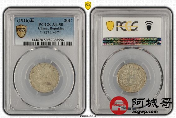 Lot:3 民国五年 大头贰角 稀少角军阀长脸版 原味 PCGS AU50