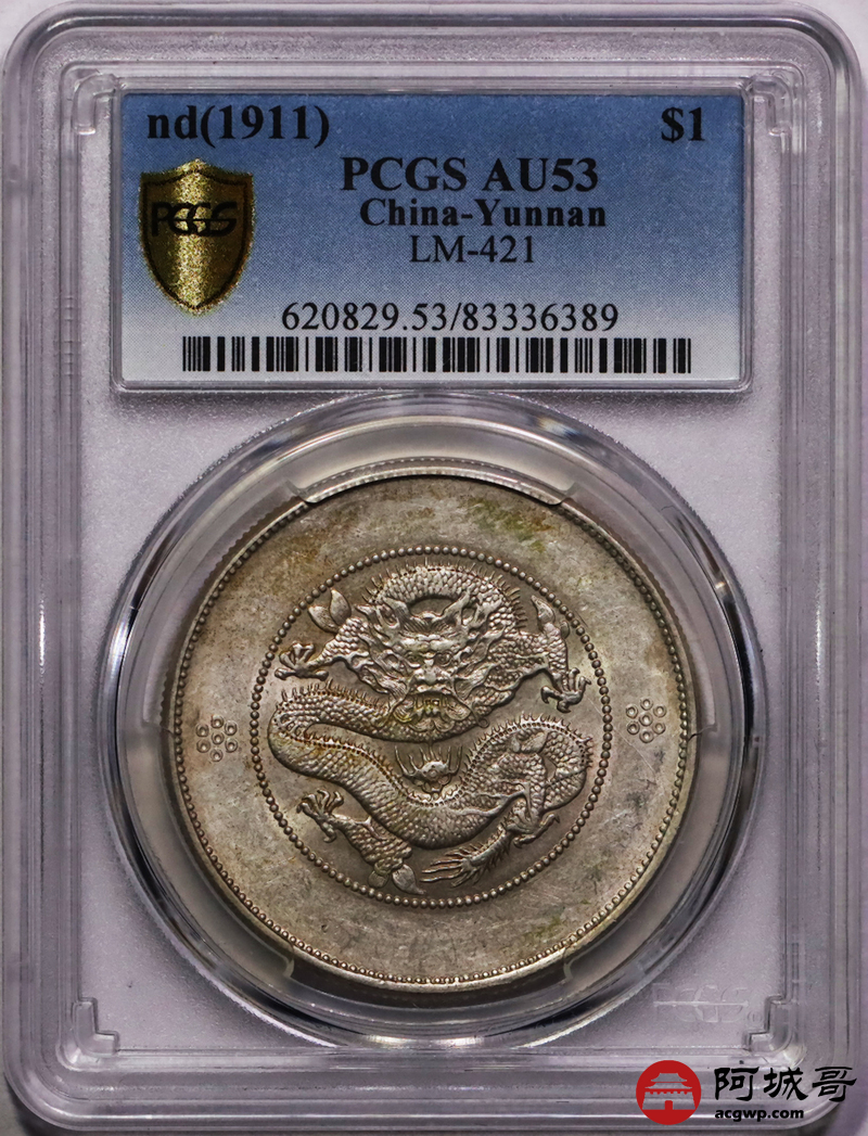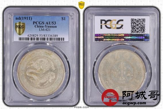 Lot:12 原味淡彩云南省造新龙光绪元宝七钱二分 PCGS AU53