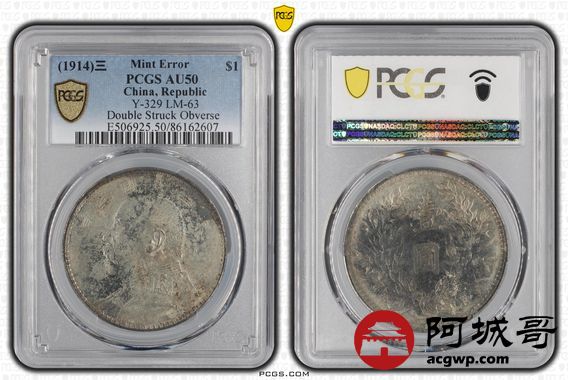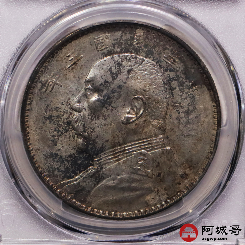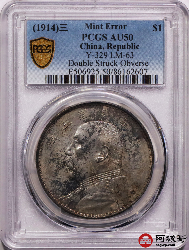 Lot:5 民国三年 移位偏打趣味币 人像鼻子 后脑勺复打 原味五彩有分难得 PCGS AU50