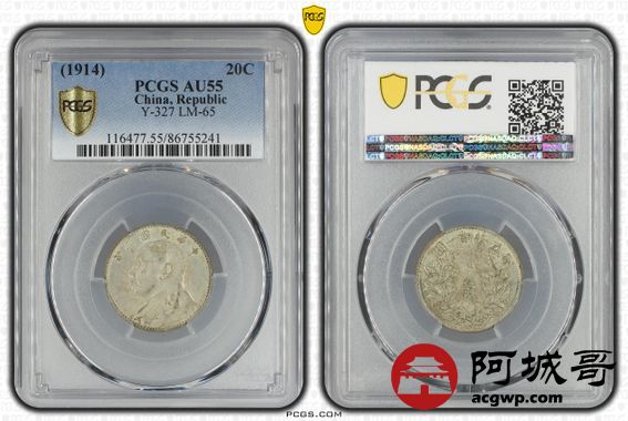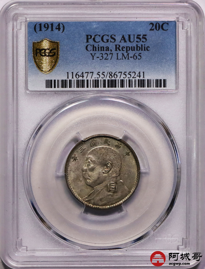 Lot:4 民国三年 南京猴脸 大头贰角 原味 PCGS AU55