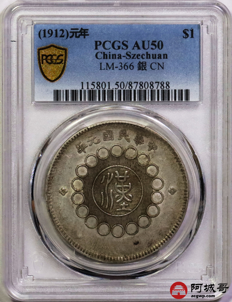 Lot:22 原味深打 老包浆 四川军政府壹圆 PCGS AU50