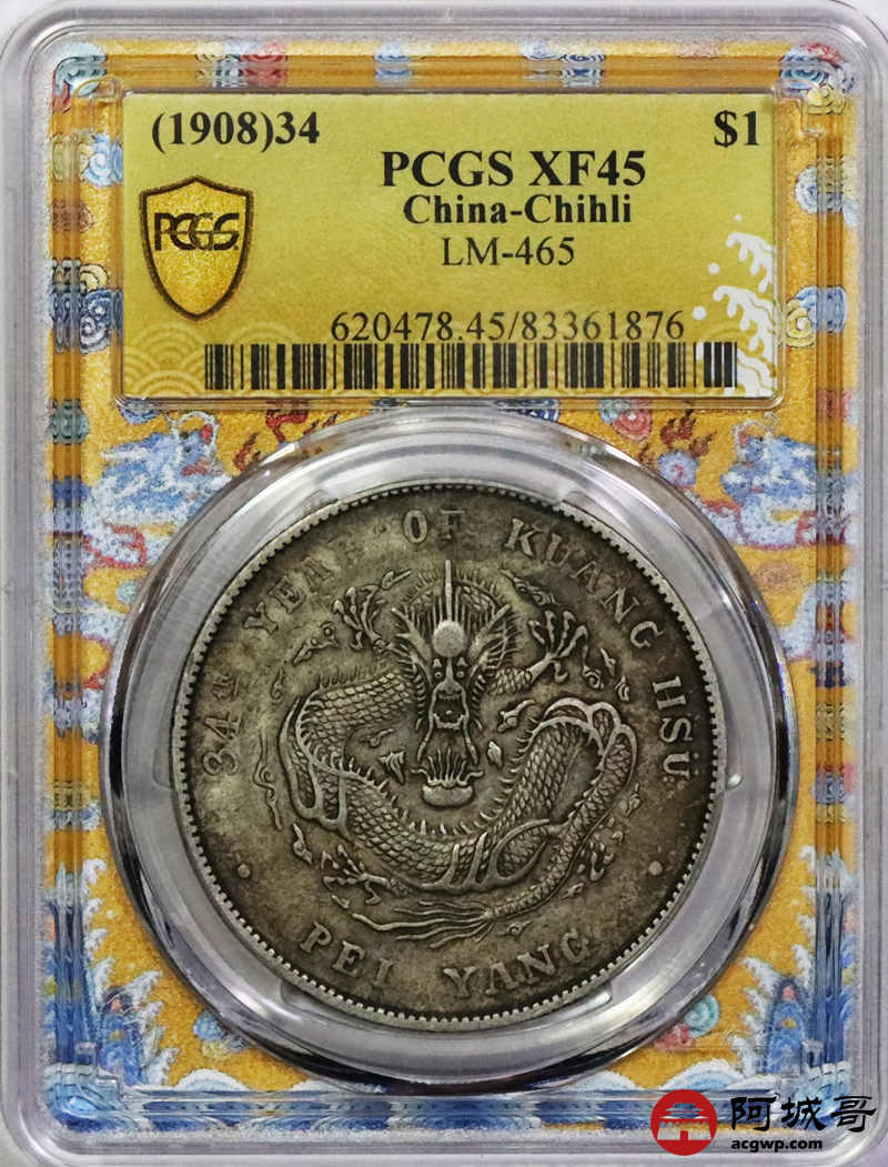Lot:15 原味老包浆 北洋34七钱二分 PCGS XF45